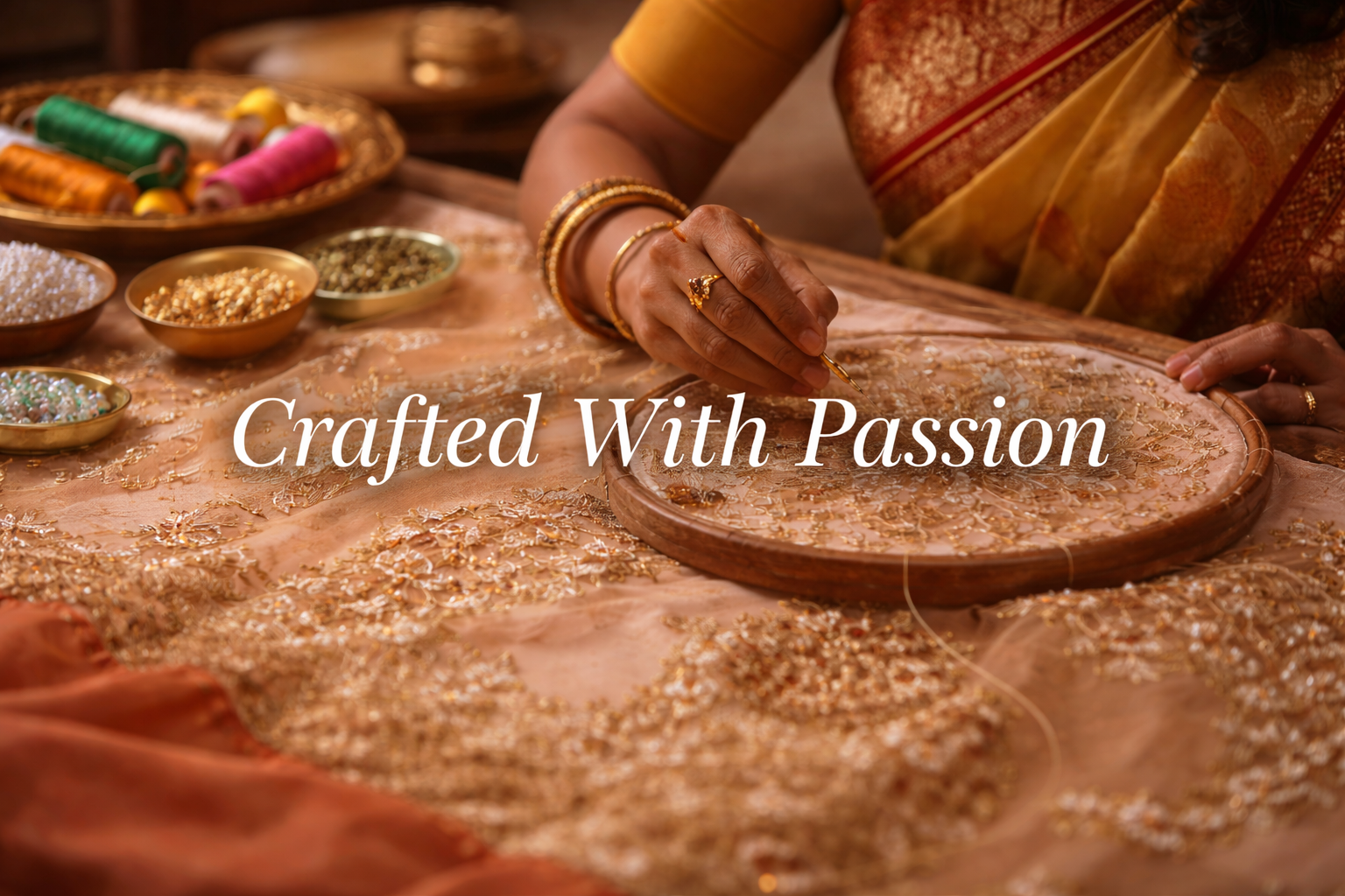 Our artisans dedicate hours of intricate handwork to bring every saree to life. From hand embroidery to delicate weaving, every detail matters.